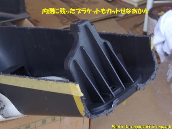 内側に残ったブラケットもセンタートンネルカバーに大きく干渉するので、思い切って切断ですね。