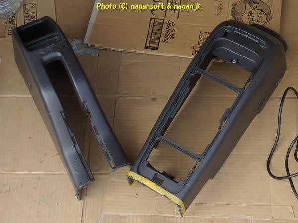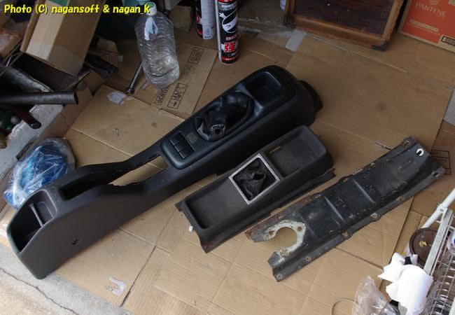 まずは、純正のボロボロになったセンターコンソール、ブログで知り合いになった方からわけてもらったセンターコンソールカバーです。