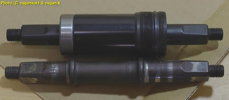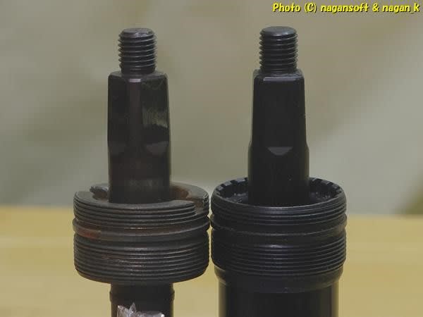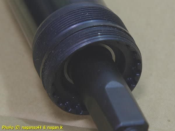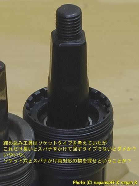 でもねー、このネジ溝って経年にて錆びると自転車のフレームにガチガチに噛みこむと思うのよね。そのときは押して回さないといけません。そうなると、ソケットの先端にレンチ差し込み穴があるタイプの方が力を入れやすいのよねー。