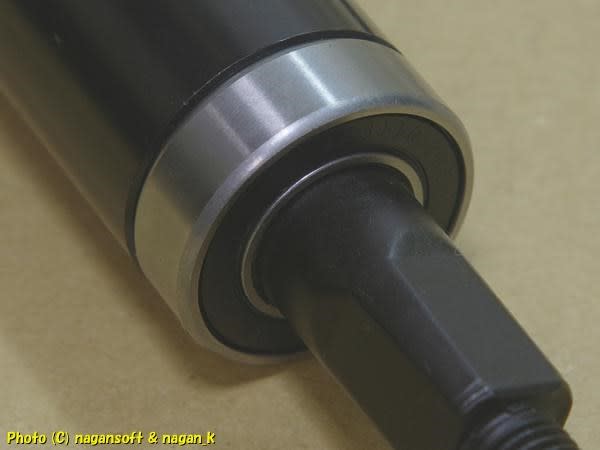 一般的なボールベアリングがシャフトにはめ込んでます。