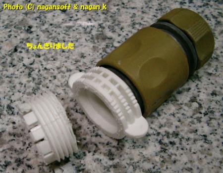 水道ワンタッチカプラオス側と、加工したペットボトルをボンドで接着です。