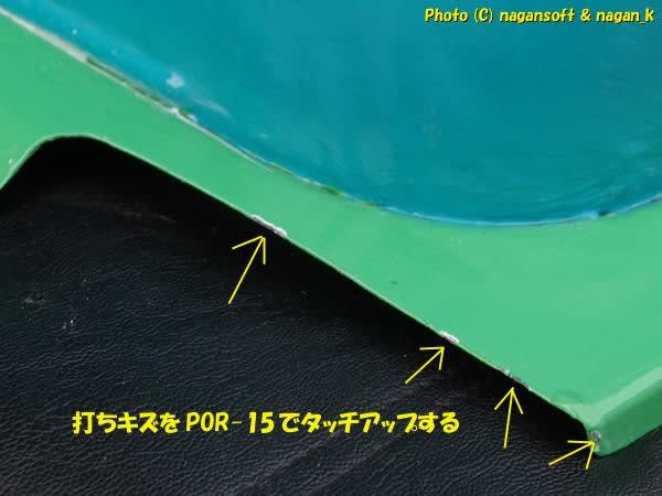 縁に打ちキズができていたのでPOR-15でタッチアップ補修することにします。