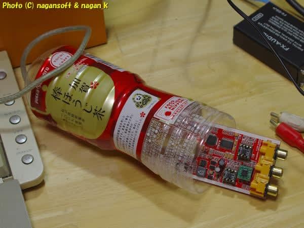 ペットボトルを切りまして、USB-DACを放り込みました。