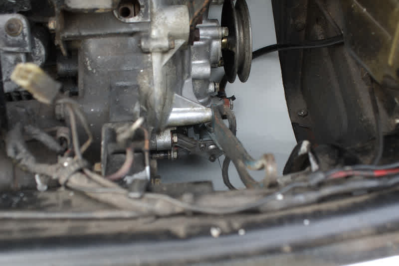 とりあえずオルタネーターを外して、汚れている状態をパシャリ。