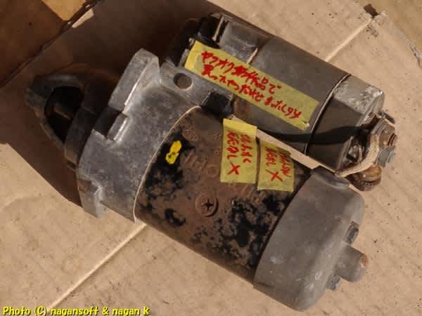 ヤフオクにて「動作品」「元気に回ります」といううたい文句で出品されていたセルモーターですよ。