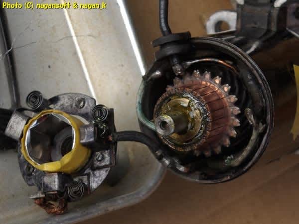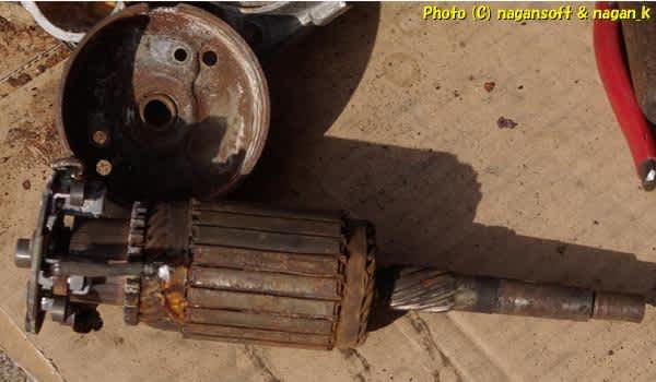 見てのとおりです。これがヤフオクで「動作品」として売られていたセルモーターですよ。