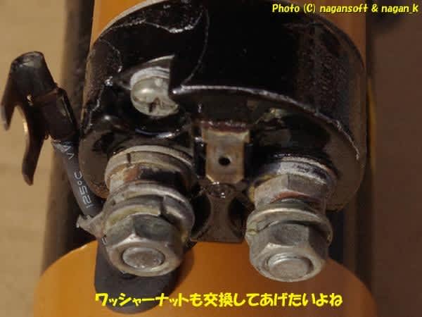 ケーブル端子部分のボルトワッシャーを綺麗なものに交換したいよね。