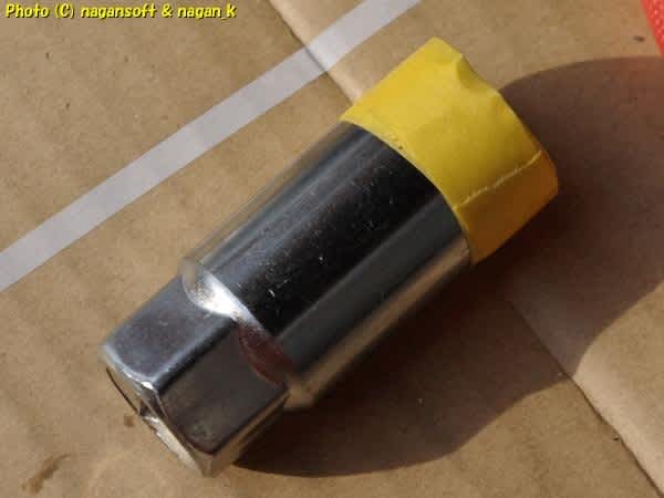 21mmのソケットにマスキングテープを巻きつけて肉盛りです。