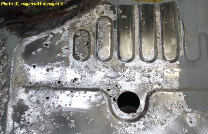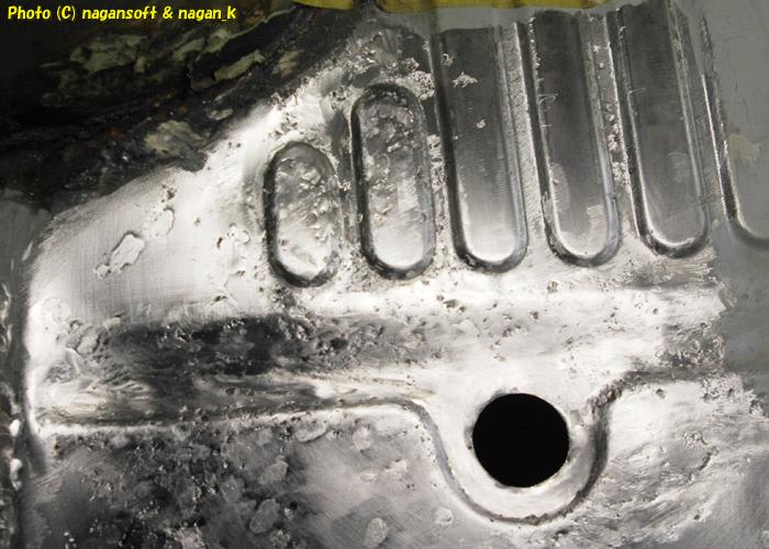 乗り降りするときに蹴り上げる部分は錆び穴がザクザク貫通です。