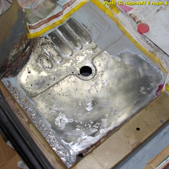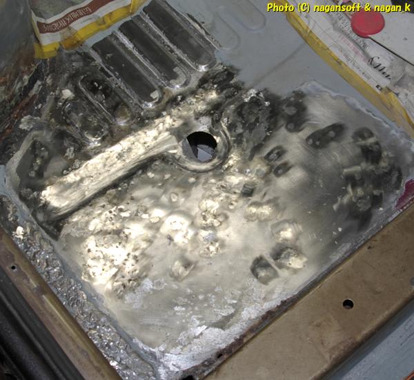 助手席床のサビ取り途中のまま、クラウンワゴンの不幸が続いて放置プレーです。鉄肌がむき出しのまま1週間たってます。