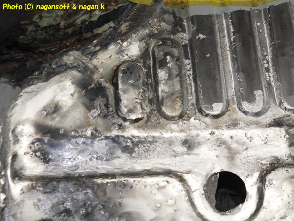 水抜き穴周辺はハンダをがっちり食いつかせて整形しました。