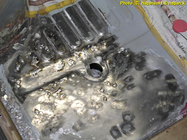まだまだ、錆び穴を塞ぎきれてません。だってハンダしていくとギラギラ光線で乱視の私の目では錆び穴の立体感が消えていくんですよ。