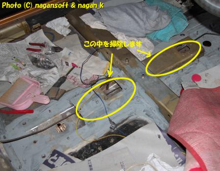 前席のブレーキパイプ部分です。強烈に錆びています。