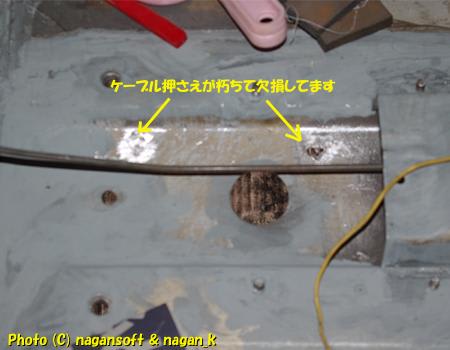 ケーブル押さえ部分も、錆で朽ち果てて欠損していました。