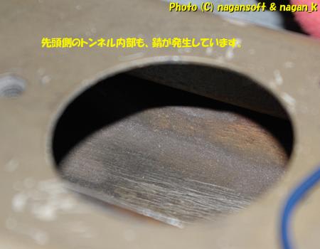 さて、トンネル内部ですが、錆はどうしても取れないので、錆びているとこだけを狙って、渋々でサビ転換剤を塗りました。