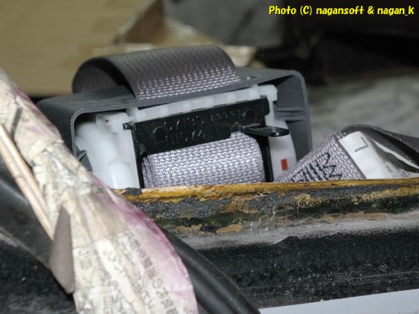 どうです?巻き取りシートベルトとヒーターダクトホースとのクリアランス。