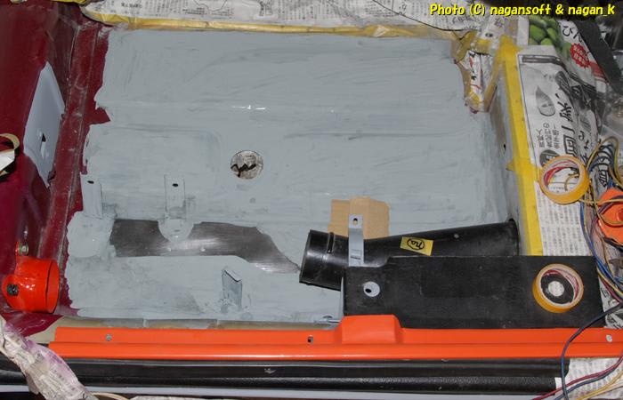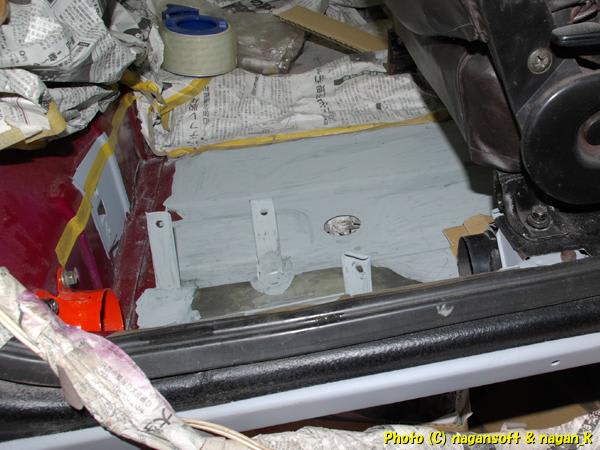 本日最初の作業でヒーターダクトにサビ止め塗料を塗ってます。それが定着しているだろうか?と確認したら、あまりの暑さでしっかりと手で触れても大丈夫な程度に乾燥してました。