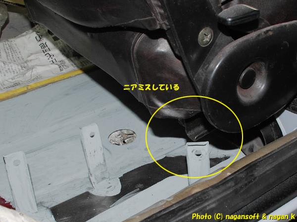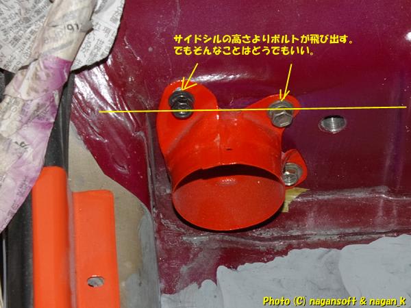 うーん。エンジンルームからの出迎えダクト固定ボルトがサイドシルの高さより高い位置に出ています。