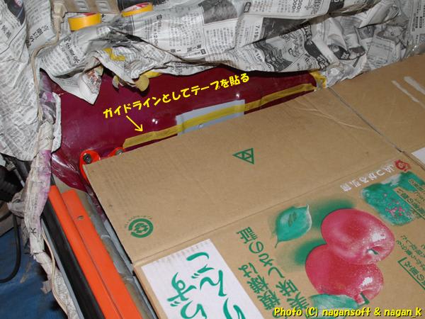 ともかくイメージするために水平のガイドラインが欲しいと思い、マスキングテープを貼ってみます。
