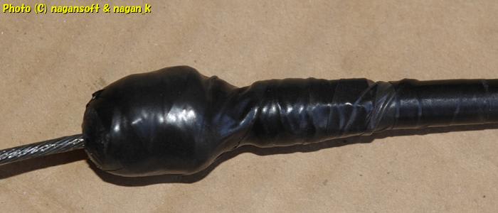 今回は先端金具がついたままなので収縮チューブが通りません。ついては、ハーネステープで仕上げます。