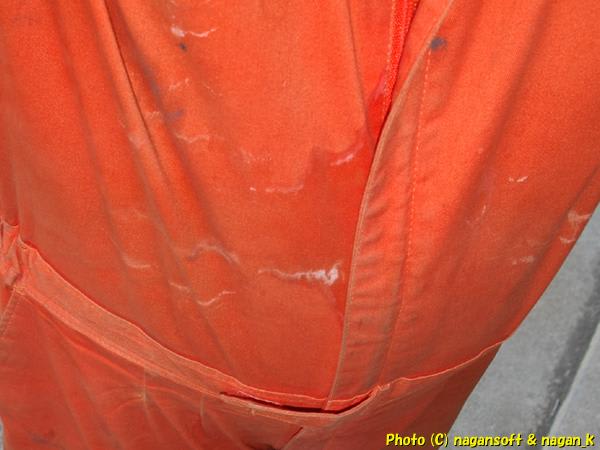 おかげさまで、私のミネラルが吸い取られて、オレンジ色の作業服が白色になるのです。