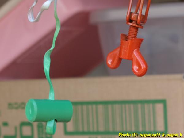 ワイヤーの先端はなるだけ重い物を付けたくないので、ヤフオク産ワイヤーに付属していたものを採用します。