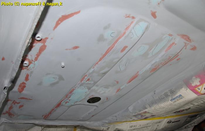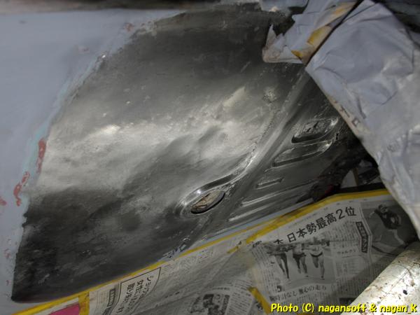 後右席床裏は10月24日にパテをなすくったままにしています。そのパテをシコシコと研ぎました。