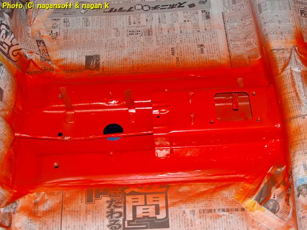このセンタートンネルのところは、えげつなくサビて欠損していた部分なので、サビが発生した時にわかりやすいように、手元にある色で明るい色をチョイスです。