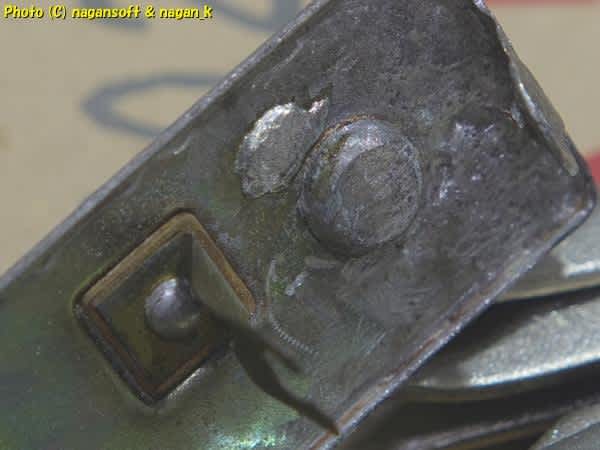 ランプ外側は、リベットのカシメ頭です。昨日にハンダ付けしようとしたのでハンダヤニで汚れています。