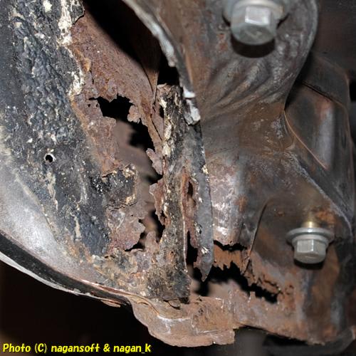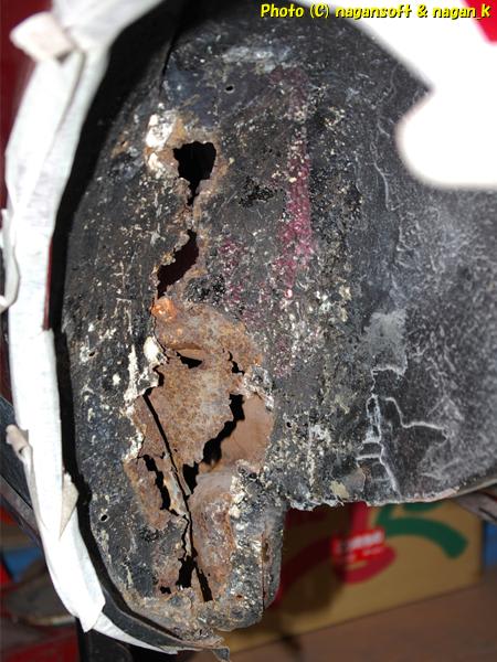 前オーナー様のサビ穴塞ぎ鉄板は剥がしたけど、その次のパテを剥がさずにそのままでしたね。
