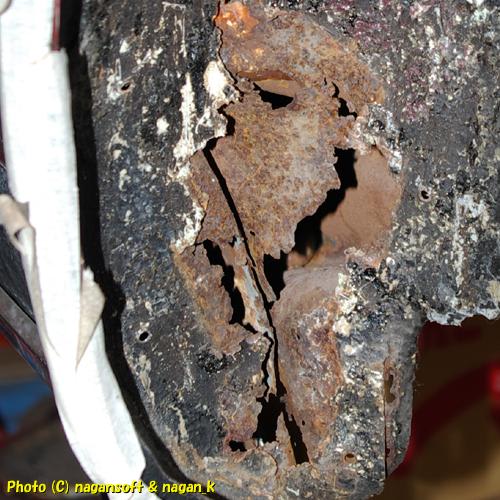 パネルが合わさっているのだけど、どちらも鉄板が錆びでボロボロになっています。