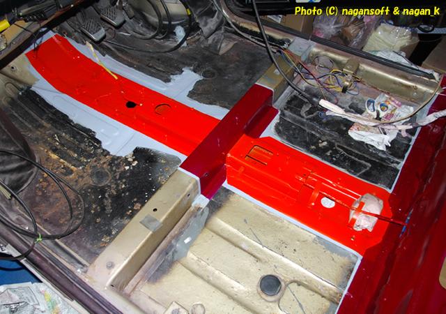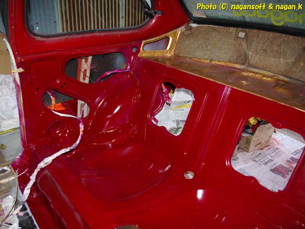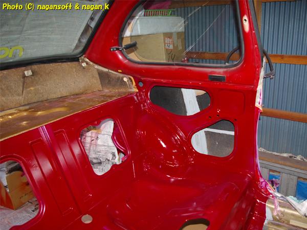室内のマスキングを剥がしました。と、いってもボルト部分やブレーキパイプ部分のマスキングはまだそのままですが。