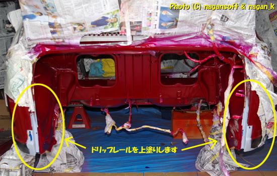 どこを攻略しようかと思いましたが、色の薄いところから攻めるべきかな?と思い、エンジンルーム手前先端のドリップレール部分にしました。