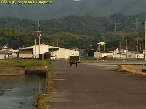 稲を積んだ可愛い田植え機がコトコト走ってますよ。