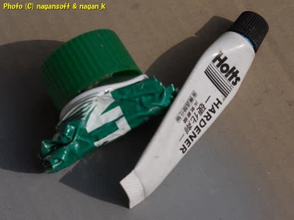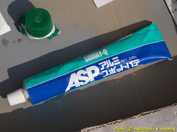数年前にスバル君の車体肌を板金していたときにストックとして買っていた薄す付けパテです。未開封だった最後の1本を封を切ることができました。