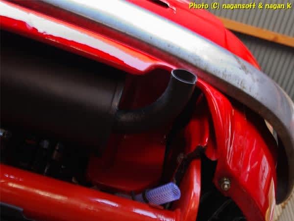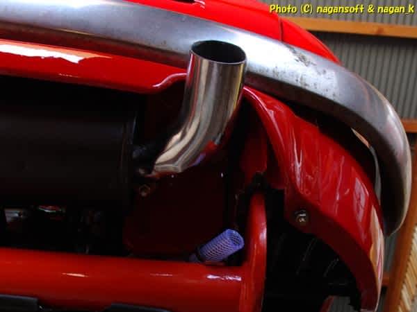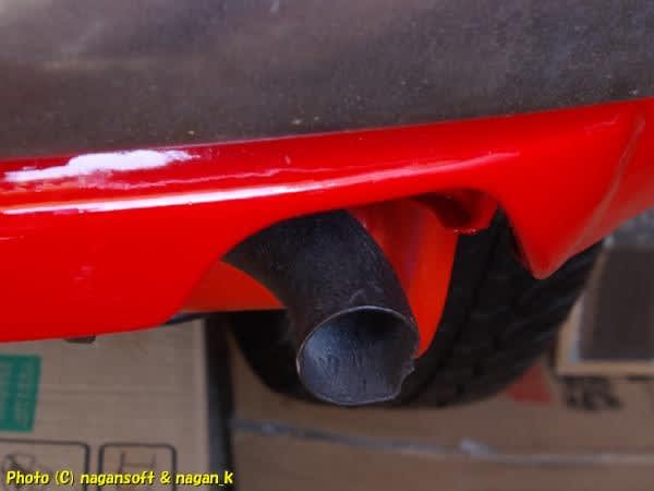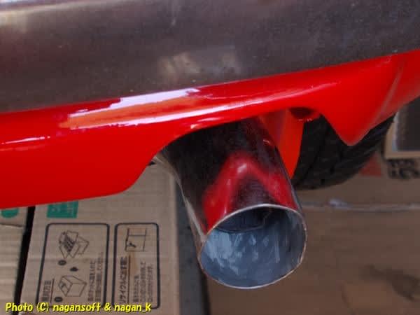 マフラーカッターの内側は、錆止め塗料筆塗りのままです。つまり筆ムラがそのままできてます。黒色に塗ればよかったかなーとちょっと後悔です。