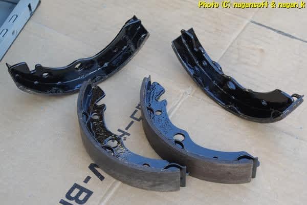 えーと、リヤブレーキシューの塗装をしたあとマスキングを剥がしてなかったので、それを剥がしました。