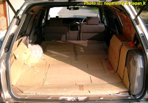 荷物積載用途が主体なので、荷室はダンボールを敷いたままです。