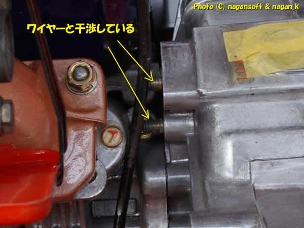 写真に取り忘れてますが….この状態にてクランクケース下にワイヤーが当ってます。