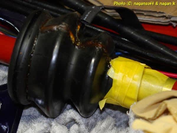 アウターのダメージ部分も、収縮チューブを施せればいいのですが….