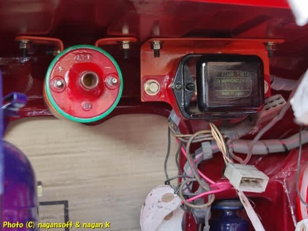 はあー、結局細かいことをして配線を組付けたときにはガレージ内は真っ暗です。