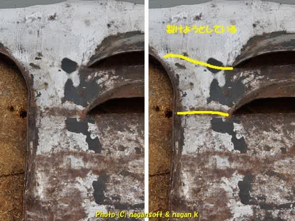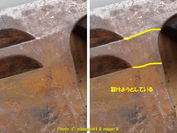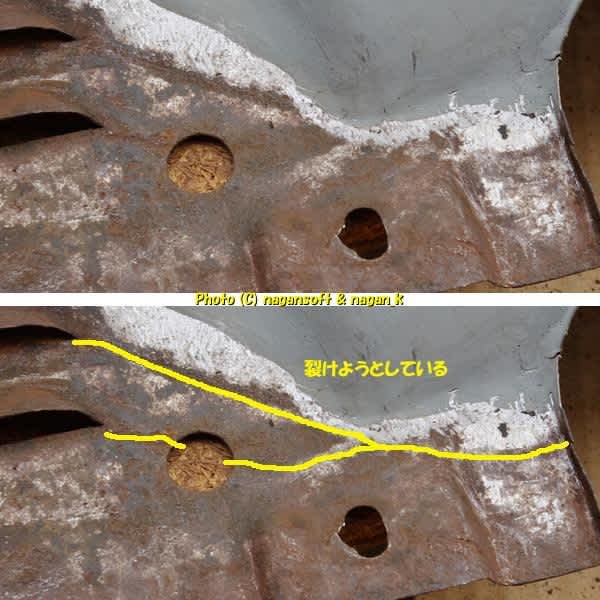 次回はこの部分を錆取りして、裂けようとしている部位をなにやら処置しようと思います。