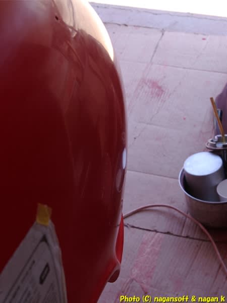 赤色が剥げちゃったよ。米粒大のプラサフ色が出現です。