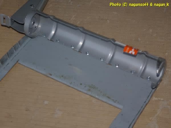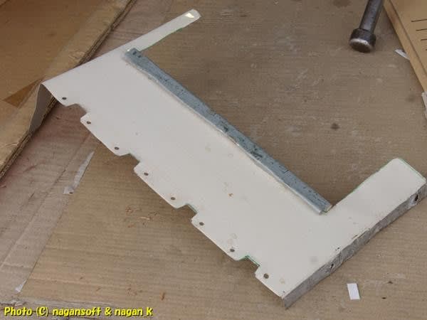 ブリキバサミで切り出して、リベット通し穴開けて、強度出しのロール折りをしてみました。組み立てるときにハンダのりしろになりそうなところの塗装剥がしもしてますよ。