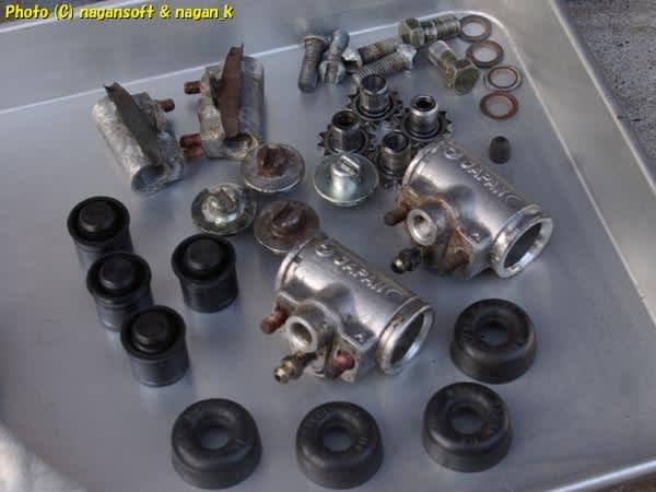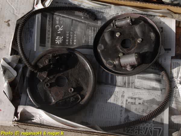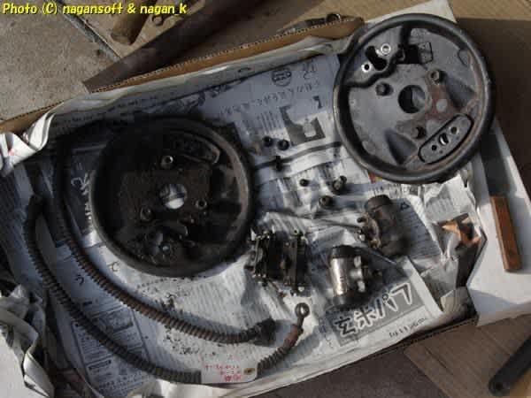 バックプレート曲がるなよー。ホイールシリンダー割れるなよー。