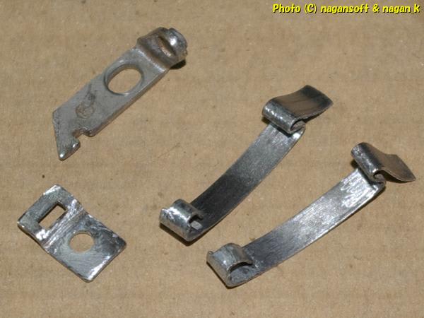 写真をよーく見るもらうとわかるかと思いますが、コンタクトプレートの微妙な錆をピカールで研磨したら、そこのメッキが剥げています。小さい浮錆だったところも鉄肌露出になりました。