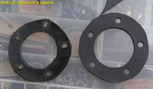 ネジをしっかり締め付けることで、3mm厚のパッキンがこんな感じになっています。