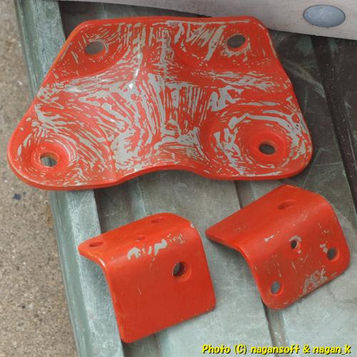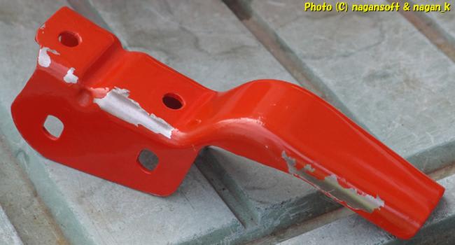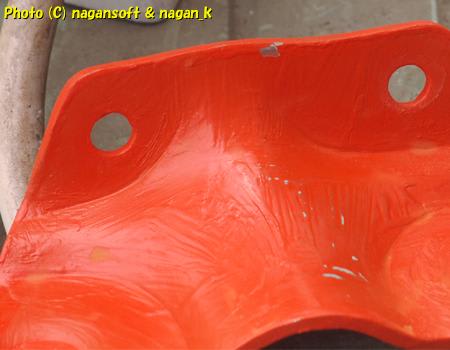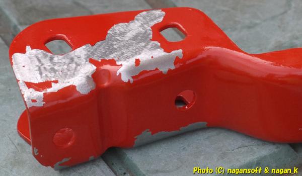 そもそも、このブラケットは錆止め塗料(エポローバル)筆塗りが超ヘタクソでボコボコ筆ムラ隆起仕上げなんですよ。