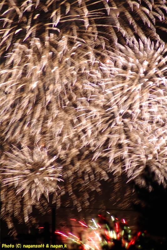 もちろん特大花火一輪の全体像がカメラの画角に入りません。ってことで特大花火を狙うことはあきらめます。