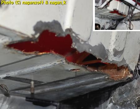 エンジンルーム天井角のサビ穴部分を掃除するつもりでいじりはじめた。